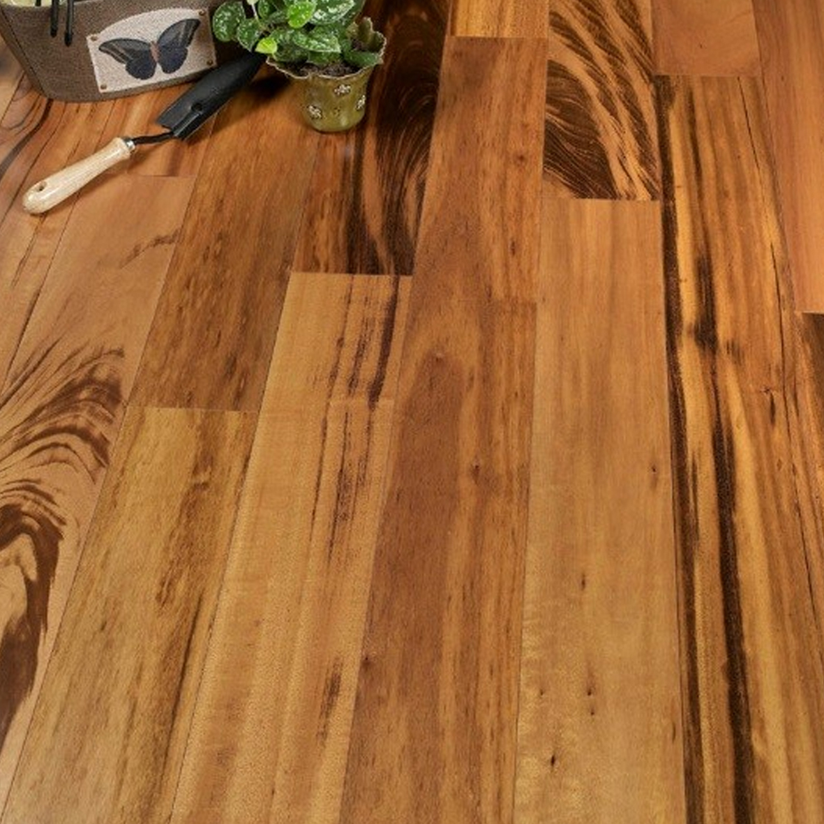 Ця деревина має різноманітні темні і світлі відтінки, що створюють вражаючий тигровий візерунок на поверхні паркету.